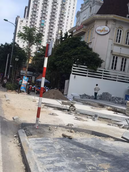 Vỉa hè đã bị bóc dỡ để làm lại