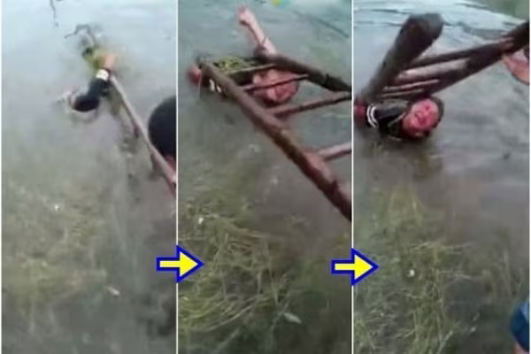 Trong đoạn video gây sốc trên, cậu bé 13 tuổi bị buộc chặt vào chiếc thang trong tư thế úp mặt ở giữa ao, trong khi ông bố liên tục dìm con trai xuống nước. “Con sẽ thay đổi! Con sẽ thay đổi!”, cậu bé van xin, nhưng ông bố chưa nguôi giận, tiếp tục ấn con trai xuống dưới nước.