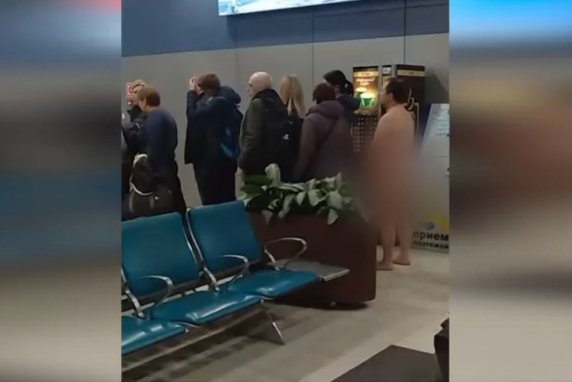 Người đàn ông khỏa thân xếp hàng lên chuyến bay tới Crimea