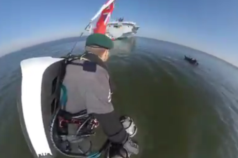 Browning, người sáng lập Công ty Gravity Industries vào năm 2017, đã thực hiện một chuyến bay ngắn quanh tàu sân bay, gây sửng sốt cho những hành khách trên một chiếc du thuyền tư nhân gần đó.