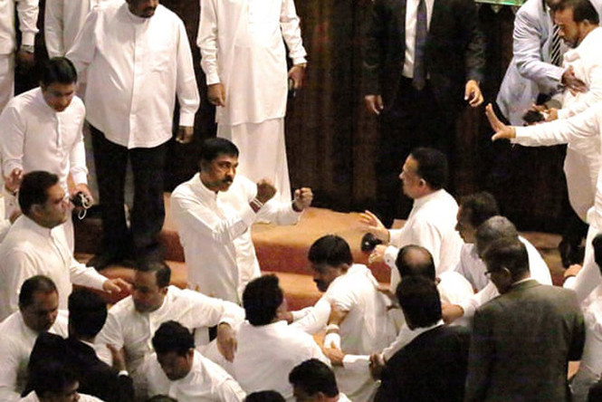 Bạo lực đã diễn ra gần 20 phút trong phiên họp vào sáng 15-11, sau khi những người ủng hộ Quyền Thủ tướng Mahinda Rajapaksa lao về phía Chủ tịch Quốc hội Karu Jayasuriya. Ngay lập tức, những nghị sĩ trung thành với Thủ tướng bị cách chức Ranil Wickremesinghe lao tới bảo vệ ông Jayasuriya. Chủ tịch Quốc hội Jayasuriya là người từng tuyên bố ông Wickremesinghe vẫn là Thủ tướng vì được đa số thành viên trong Quốc hội ủng hộ.