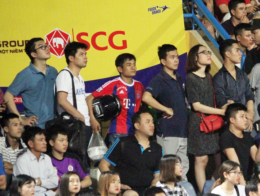 Do số người được cho vào vượt quá số ghế khu giữa khán đài A nên nhiều khán giả phải đứng chen chúc để theo dõi trận đấu