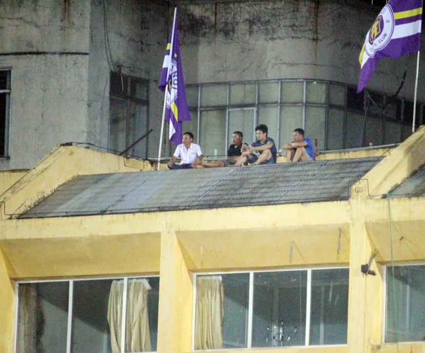 Cá biệt một số khán giả bất chấp nguy hiểm leo lên nóc khán đài B ngồi xem trận đấu