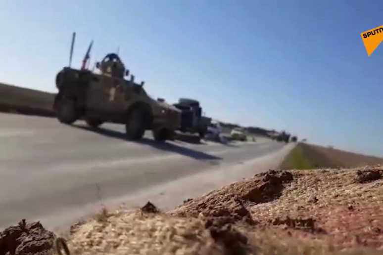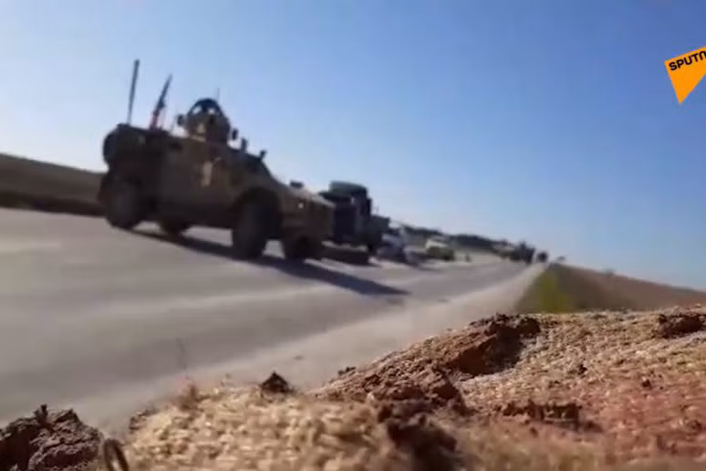 Trong đoạn video do hãng Sputnik tiếng Arập thực hiện, người ta có thể nhìn thấy đoàn xe quân sự Mỹ đã bị buộc phải quay đầu khi tới gần trạm kiểm soát của quân đội Syria.