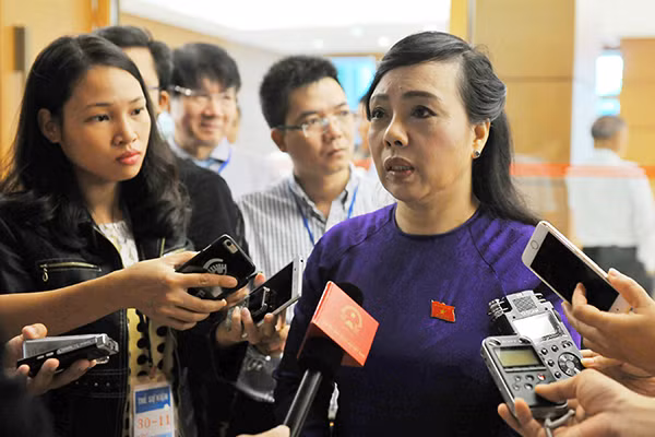 Bộ trưởng Bộ Y tế Nguyễn Thị Kim Tiến trả lời phỏng vấn bên hành lang Quốc hội sáng 19-11