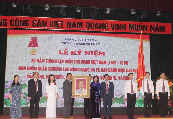 Sáng nay, 8-11, Viện Tim mạch Việt Nam – Bệnh viện Bạch Mai tổ chức kỷ niệm 30 năm thành lập và đón nhận Huân chương Lao động hạng Ba. Phó Chủ tịch nước Đặng Thị Ngọc Thịnh, Bộ trưởng Bộ Y tế - Trưởng Ban Bảo vệ chăm sóc sức khỏe cán bộ trung ương Nguyễn Thị Kim Tiến đã đến dự.