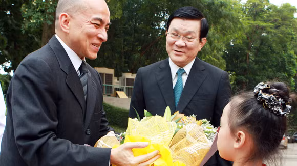 Sau lễ đón chính thức được cử hành trọng thể với nghi thức cao nhất tại Phủ Chủ tịch, Chủ tịch nước Trương Tấn Sang đã hội kiến với Quốc vương Campuchia Norodom Sihamoni. Chủ tịch nước Trương Tấn Sang đánh giá cao ý nghĩa quan trọng của chuyến thăm diễn ra vào dịp hai nước đang tổ chức nhiều hoạt động chào mừng Năm Hữu nghị Việt Nam - Campuchia 2012 và kỷ niệm 45 năm quan hệ ngoại giao hai nước. Quốc vương Norodom Sihamoni bày tỏ sự biết ơn sâu sắc tới Đảng, Nhà nước, Chính phủ và nhân dân Việt Nam anh hùng đã dành cho nhân dân Campuchia sự ủng hộ nhiệt tình và giúp đỡ quý báu trước đây cũng như hiện nay, đồng thời khẳng định sẽ tiếp nối truyền thống trong việc củng cố, phát triển hơn nữa mối quan hệ hữu nghị, hợp tác tốt đẹp vốn có giữa hai dân tộc và nhân dân hai nước anh em Campuchia - Việt Nam.