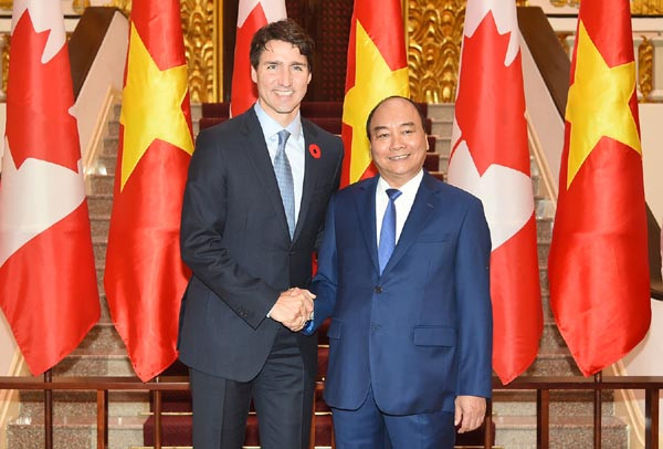 Chiều 8/11, sau lễ đón chính thức, tại Trụ sở Chính phủ, Thủ tướng Chính phủ Nguyễn Xuân Phúc đã hội đàm với Thủ tướng Canada Justin Trudeau.