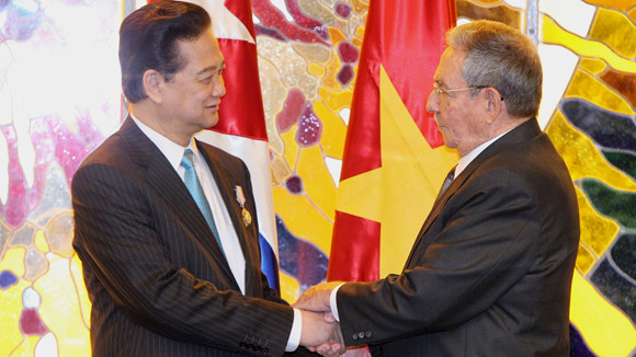 Chiều 26-3, lãnh tụ Cuba Fidel Castro đã tiếp Thủ tướng Nguyễn Tấn Dũng. Hai bên đã trao đổi rộng rãi về mối quan hệ lịch sử giữa Việt Nam và Cuba, cũng như kinh nghiệm của hai nước trong việc phát triển kinh tế - xã hội. Hai bên cũng trao đổi ý kiến xung quanh những mối nguy hiểm do tình trạng biến đổi khí hậu và những thách thức khác gây ra với loài người. Cũng tại cuộc gặp, lãnh tụ Fidel Castro đã chia sẻ với Thủ tướng Nguyễn Tấn Dũng về kết quả các công trình nghiên cứu của các nhà khoa học Cuba có thể làm tăng sản lượng lương thực.