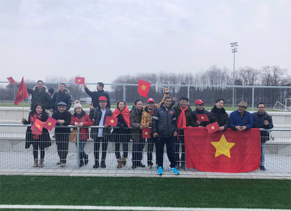 Một số người Việt Nam tại Đức tới sân cổ vũ cho đội tuyển nữ quốc gia