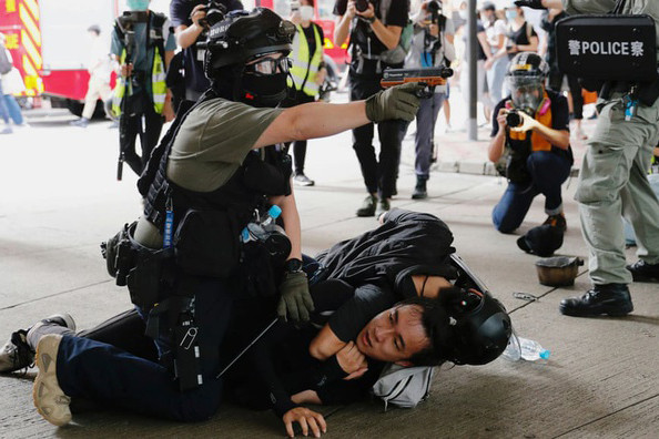 Cảnh sát ghì người biểu tình xuống đất tại Hồng Kông