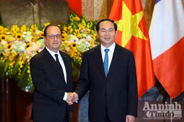 Chủ tịch nước Trần Đại Quang chào mừng Tổng thống Francois Hollande thăm cấp Nhà nước tới Việt Nam, đánh giá cao ý nghĩa của chuyến thăm đối với quan hệ hai nước. Tổng thống Francois Hollande bày tỏ vui mừng tới thăm đất nước Việt Nam tươi đẹp, khẳng định mong muốn chuyến thăm sẽ thúc đẩy hơn nữa quan hệ Đối tác chiến lược giữa hai nước.