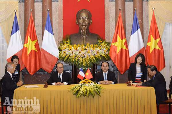 Sau hội đàm sáng nay tại Phủ Chủ tịch, Chủ tịch nước Trần Đại Quang và Tổng thống Pháp Francois Hollande đã chứng kiến lễ ký kết một số văn bản hợp tác song phương. Trong đó có các Hiệp định về dẫn độ, tương trợ tư pháp giữa hai nước, cũng như thỏa thuận hành chính giữa bộ Nội vụ và bộ Tư pháp hai nước; hai bên cũng ký kết các biên bản ghi nhớ về hợp tác quản lý nguồn nước, thích ứng biến đối khí hậu, khai thác vũ trụ, nông nghiệp, đường cao tốc, giảng dạy tiếng Pháp...