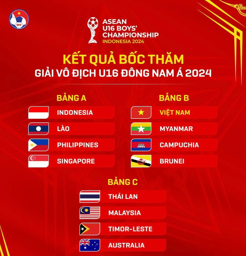 | Kết quả bốc thăm giải U19 Đông Nam Á 2024 |