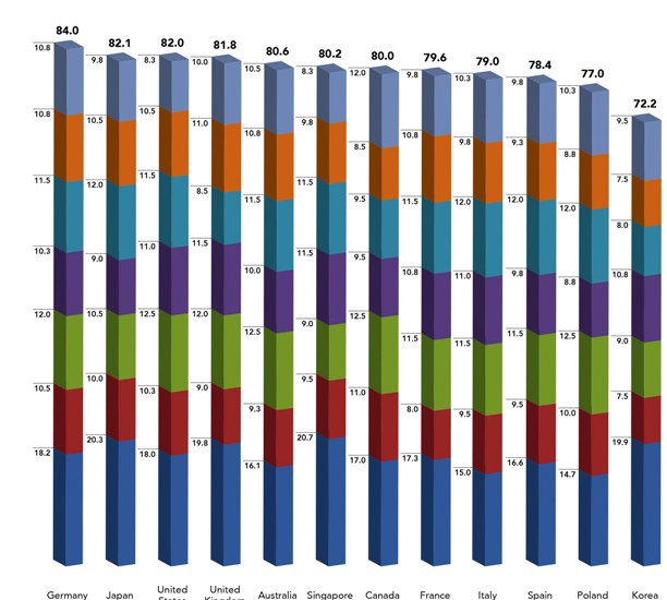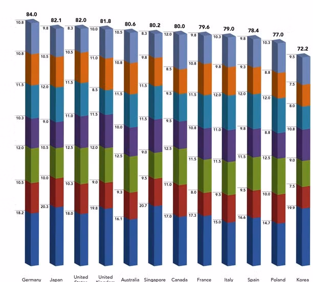 Năm 2018, phần lớn các nước đều tiếp tục có sự tiến bộ. Tuy nhiên vẫn còn một số thị trường đang bị tụt lại phía sau. Đức là nước có điểm số cao nhất trên Thẻ điểm nhờ áp dụng các chính sách quốc gia về an ninh mạng và khuyến khích tự do thương mại, tiếp đến là Nhật Bản và Hoa Kỳ.