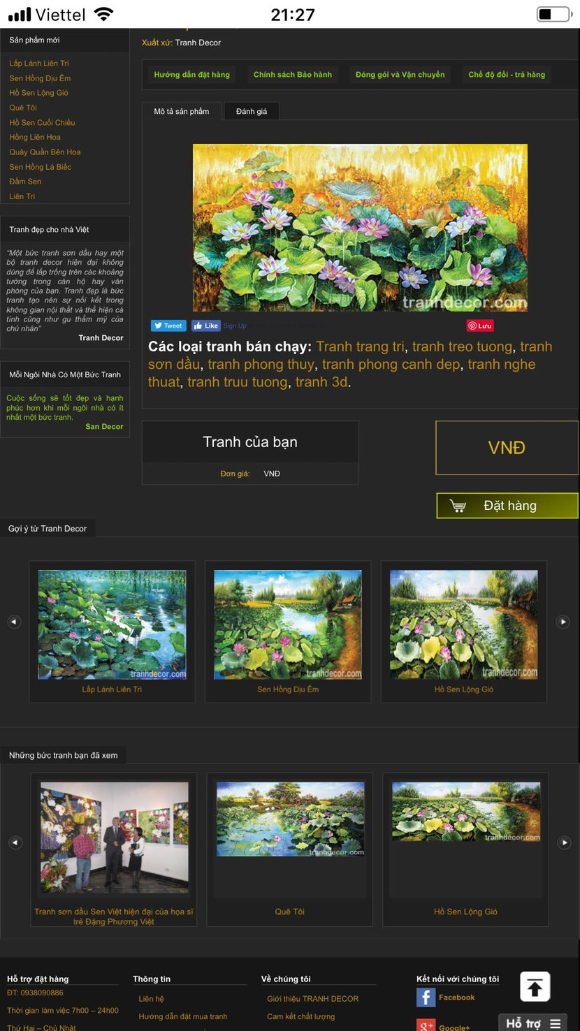 "Trang website tranhdecor.com đã đăng bài viết về tôi và các tác phẩm của tôi từng bày tại triển lãm nhằm "tung hỏa mù" về tác giả thực sự của các bức tranh sen đang được bày bán trên website này", họa sỹ Đặng Phương Việt lý giải.