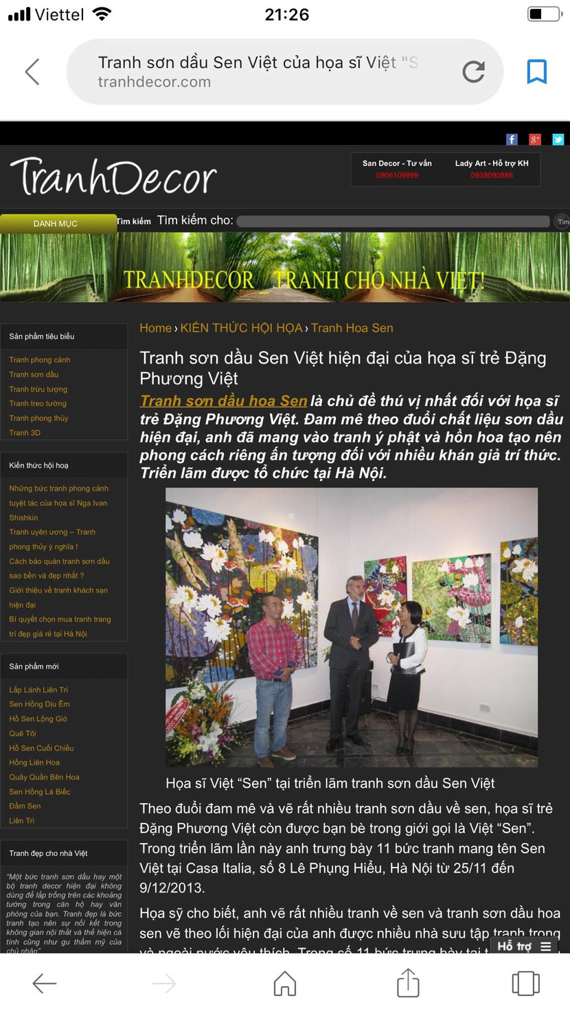 Bài viết về họa sỹ Đặng Phương Việt được đăng trên tranhdecor.com mà chưa được sự đồng ý của tác giả