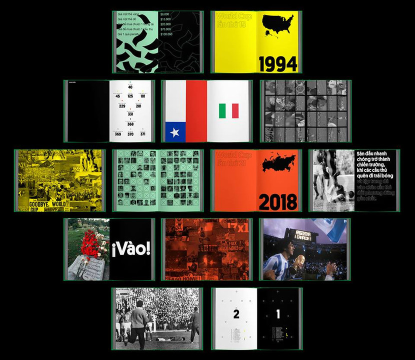 Đáng chú ý, cuốn sách này dày hơn 300 trang, có kích thước mô phỏng theo tỉ lệ sân bóng đá tiêu chuẩn. Thiết kế tận dụng màu xanh của mặt cỏ sân bóng, màu trắng của vạch vôi, màu vàng và đỏ của các loại thẻ, sự tương phản giữa hai mặt sáng - tối khi dùng hai màu đen - trắng...