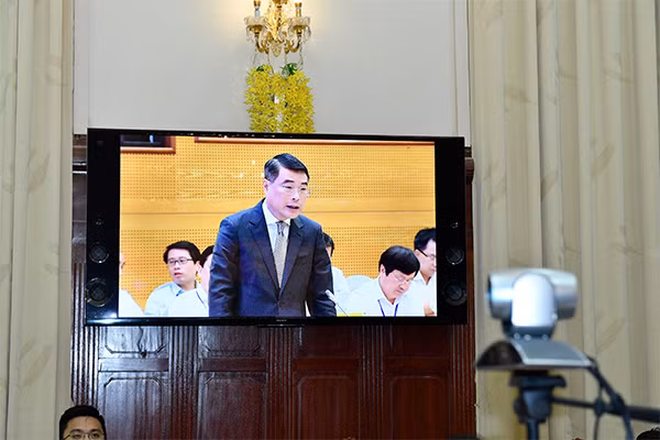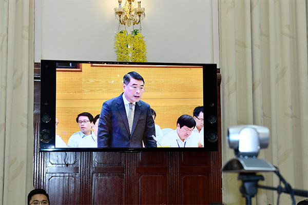 Chủ tịch HĐQT VietinBank Lê Đức Thọ là đại diện duy nhất của các NHTM phát biểu tại hội nghị do Thủ tướng Chính phủ chủ trì