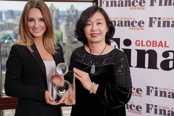 Bà Trần Thị Minh Đức - Giám đốc Khối Vận hành hàm Phó Tổng Giám đốc VietinBank nhận giải thưởng tại London (Anh Quốc)