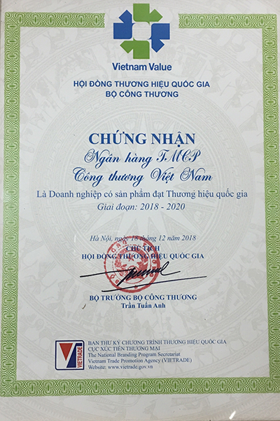 Tại buổi lễ, VietinBank là 1 trong 97 doanh nghiệp được vinh danh là Thương hiệu Quốc gia. Việc tôn vinh các Thương hiệu Quốc gia sẽ trở thành động lực phát triển cho các doanh nghiệp có thêm cơ hội phát huy những thế mạnh đang có, tiếp tục đổi mới, nghiên cứu, sáng tạo nâng cao chất lượng sản phẩm. Qua đó, các doanh nghiệp có thể lan tỏa thương hiệu đến gần hơn với khách hàng, góp phần xây dựng hình ảnh, sản phẩm dịch vụ ngày càng chất lượng hơn.