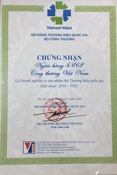 Chứng nhận và cúp Thương hiệu Quốc gia năm 2018 của VietinBank