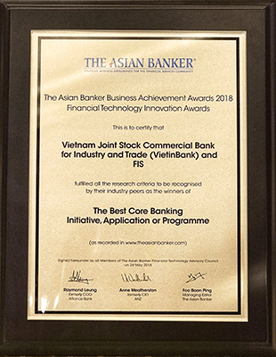Giải thưởng “Chương trình đổi mới Core Banking tốt nhất” là sự công nhận trên phạm vi châu Á về bước đột phá công nghệ của VietinBank cùng với đối tác Fidelity (Mỹ). Việc triển khai dự án thay thế Core Banking là một quyết định táo bạo, đầu tư lớn về nguồn lực, mang lại giá trị tích cực, to lớn cho khách hàng về chất lượng và hiệu quả dịch vụ. Qua đây đánh dấu vai trò tiên phong của VietinBank trong đổi mới công nghệ ngân hàng ở Việt Nam và khu vực.