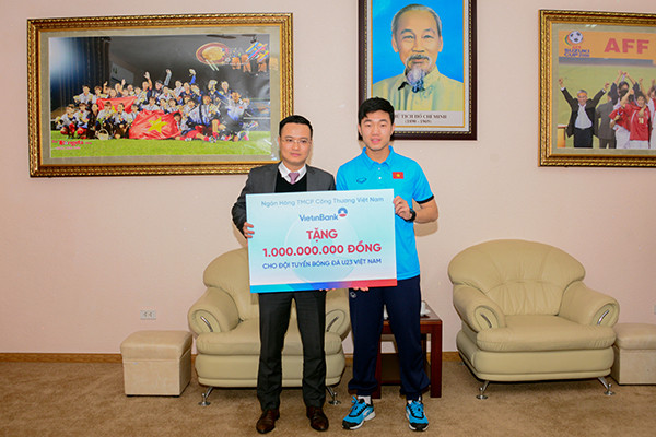 “Thành tích đặc biệt xuất sắc của đội tuyển bóng đá nam U23 Việt Nam tại giải đấu đã mang lại cho người hâm mộ cả nước những cảm xúc mãnh liệt và khơi dậy niềm tự hào dân tộc, viết nên trang sử mới cho bóng đá Việt Nam. Trước thành tích lịch sử đó, hòa chung với niềm tự hào của cả nước, Ban Lãnh đạo VietinBank đã quyết định trao tặng 1 tỷ đồng cho đội tuyển bóng đá nam U23 Việt Nam” - ông Vinh nhấn mạnh.