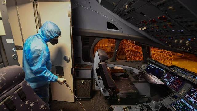 Toàn bộ khu vực khoang hành khách, buồng lái, khu chuẩn bị của tiếp viên đều được khử trùng nghiêm ngặt. Các vị trí, thiết bị được tập trung khử trùng, lau chùi vệ sinh là nơi có nhiều người tiếp xúc bằng tay như khóa ngăn hành lý, thanh tỳ tay trên ghế ngồi, tai nghe, các nút bấm…