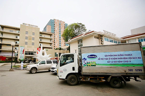 Vinamilk đã tổ chức ngay các chuyến xe đưa sản phẩm sữa đến bệnh viện Bạch Mai trong ngày 31/03 và những ngày sắp tới