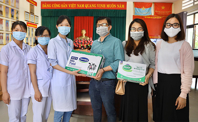 Trong thời điểm này, đội ngũ cán bộ y tế tuyến đầu chống dịch là lực lượng rất cần được quan tâm, bảo vệ và hỗ trợ từ cộng đồng. Chung tay cùng Chính phủ và xã hội, Vinamilk cũng đã liên tiếp thực hiện nhiều hoạt động đồng hành và tiếp sức cho các “anh hùng áo trắng” trong cuộc chiến với dịch bệnh. Từ giữa tháng 3/2020, để tiếp sức cho đội ngũ gần 1.000 y bác sĩ tuyến đầu của TP.HCM chống dịch, Vinamilk đã ủng hộ các sản phẩm dinh dưỡng, tăng cường đề kháng với tổng giá trị tương đương 1 tỷ đồng. Trước đó, hưởng ứng lời kêu gọi toàn dân tham gia chống dịch của Chính phủ, Vinamilk đã ủng hộ 10 tỷ đồng để mua các các thiết bị sinh phẩm y tế phục vụ công tác xét nghiệm và phát hiện nhanh Covid-19.