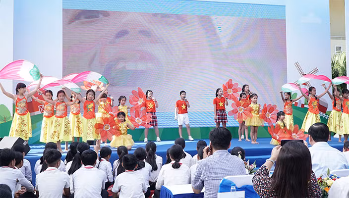 Ngày hội 1/6 diễn ra rất sôi động với nhiều tiết mục văn nghệ do các em học sinh biểu diễn và sân chơi được Vinamilk tổ chức cho các em