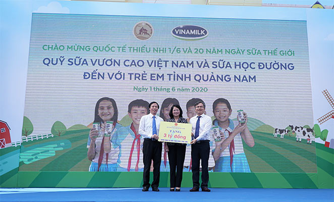 Ngày 1/6 hàng năm còn được Tổ chức nông lương Liên hiệp quốc (FAO) chọn làm Ngày sữa thế giới - World Milk Day. Năm 2020, Ngày sữa thế giới được phát động trên toàn cầu với chủ đề #EnjoyDairy. Hưởng ứng chủ đề này, bên cạnh chương trình Sữa học đường, Vinamilk và Quỹ sữa vươn cao Việt Nam cũng đã mang niềm vui được uống sữa cho trẻ em có hoàn cảnh đặc biệt đang được nuôi dạy tại các trung tâm bảo trợ xã hội, nhà mở… của tỉnh Quảng Nam với việc trao tặng hơn 112.000 ly sữa trị giá hơn 800 triệu đồng.
