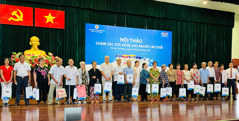 Vinamilk kết hợp tổ chức tặng quà cho các cụ người cao tuổi có hoàn cảnh khó khăn trong hội thảo Chăm sóc sức khỏe người cao tuổi tại TP.HCM.