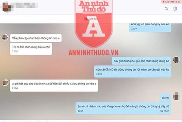 Người này hỏi anh T. về thông tin đăng ký thuê bao chính chủ trong thời gian qua, và đề nghị anh T. gửi ảnh chụp Chứng minh nhân dân cả 2 mặt vào tài khoản Zalo của số máy 08886202**.