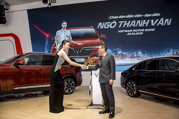 Sáng 25/10, tại gian trưng bày của VinFast trong khuôn khổ triển lãm Vietnam Motor Show 2019, ông Võ Quang Huệ - Phó Tổng giám đốc Tập đoàn Vingroup, đã giới thiệu đạo diễn - diễn viên Ngô Thanh Vân trong vai trò mới là đại sứ thương hiệu VinFast.