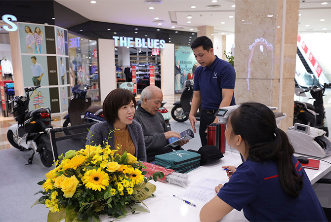 Hệ thống 20 showroom mới dành riêng cho xe máy điện được bố trí tại các vị trí thuận lợi trong các trung tâm thương mại Vincom ở các tỉnh thành. Các showroom này có diện tích trung bình từ 20m2 – 50m2, được thiết kế mở theo phong cách hiện đại với không gian chính tập trung trưng bày sản phẩm, nhằm tối ưu hóa trải nghiệm của khách hàng.