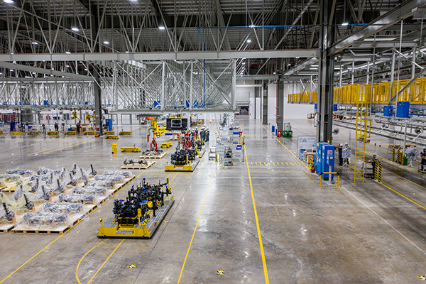 Bên cạnh quy mô vượt trội, VinFast cũng là nhà máy ô tô đầu tiên tại Việt Nam sở hữu chu trình sản xuất hoàn thiện, đồng bộ và tự động hóa cao hàng đầu quốc tế với 6 nhà xưởng gồm: xưởng dập, xưởng hàn thân vỏ, xưởng sơn, xưởng động cơ, xưởng phụ trợ và xưởng lắp ráp. Các xưởng được kết nối liên hoàn và tự động hoá với hàng nghìn robot ABB, trang bị hệ điều hành sản xuất thông minh Siemens và SAP mang lại hiệu suất tối ưu.