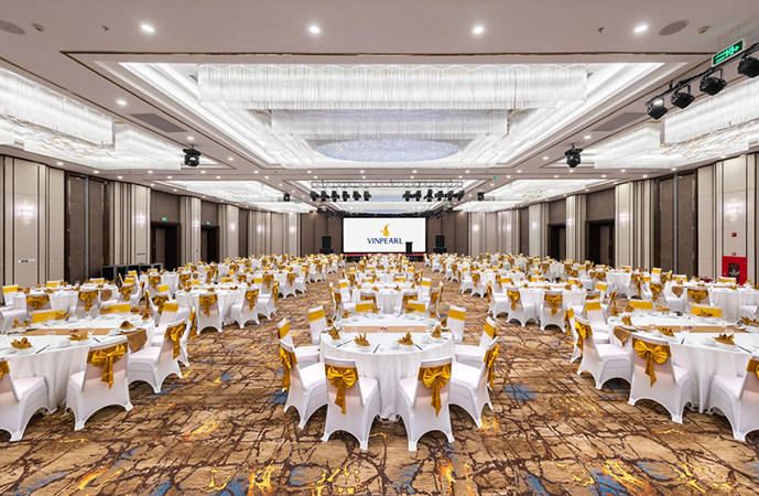 Hệ thống phòng họp tại Vinpearl Hotel Imperia Hải Phòng đa dạng, gồm ballroom có sức chứa lên tới 900 khách cùng 4 phòng họp riêng tư được trang bị hiện đại, sang trọng với thiết bị âm thanh, ánh sáng đáp ứng chuẩn mực quốc tế. Đây sẽ là sự lựa chọn hàng đầu để tổ chức sự kiện lớn, không gian tiệc cưới đẳng cấp hay các cuộc hội thảo, hội nghi quan trọng tầm cỡ khu vực và quốc tế.