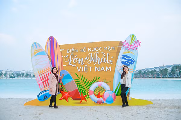 Hàng ngàn khách hàng vô cùng thích thú trước vẻ đẹp ấn tượng của biển hồ nước mặn Vinhomes Ocean Park.