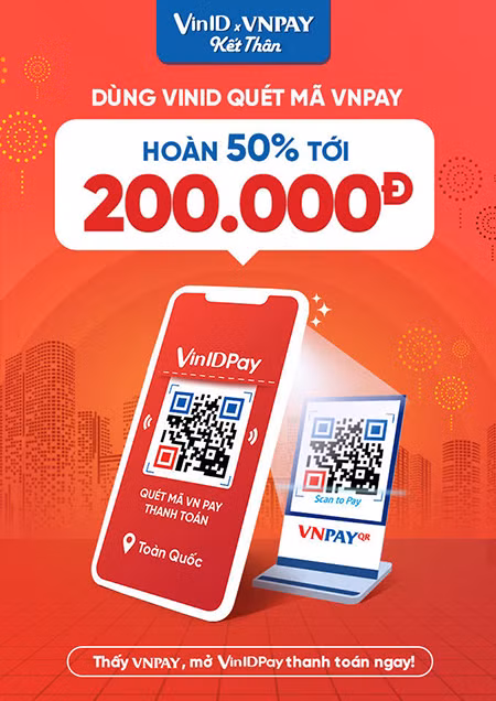 Nhân sự kiện này, từ 31/10/2019, khách hàng thanh toán lần đầu qua ví VinID Pay sẽ được hoàn tiền lên tới 50% (tối đa 200.000 đồng) khi mở ứng dụng VinID quét mã code VNPAY-QR để thanh toán tại 60.000 điểm chấp nhận thanh toán của VNPay và VinID Pay.