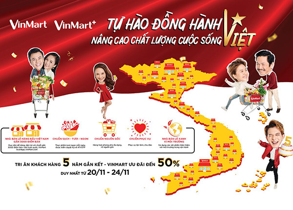 Đây là chuỗi chương trình khuyến mại nhân dịp kỷ niệm 5 năm hoạt động của hệ thống VinMart & VinMart+. Với chủ đề “Tự hào đồng hành, nâng cao chất lượng cuộc sống Việt”, hệ thống bán lẻ quy mô lớn nhất Việt Nam trước tiên tri ân tới các khách hàng đã tin tưởng và đồng hành với VinMart trong thời gian qua. Cụ thể, VinMart sẽ tặng 3.500 phần quà đặc biệt có tổng trị giá lên tới 5,5 tỷ đồng cho 3.500 khách hàng thân thiết nhất có tổng số tiền mua sắm lớn nhất trong năm 2019.