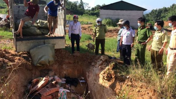 Các lực lượng chức năng tiêu hủy số vịt đông lạnh không rõ nguồn gốc