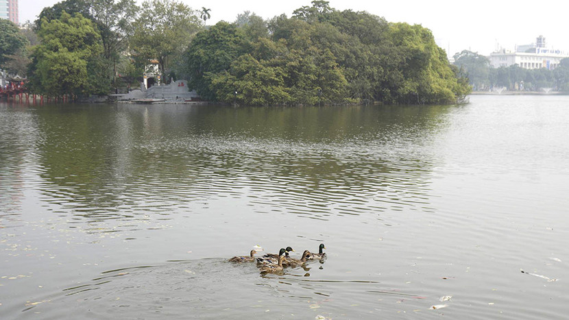 Những ngày gần đây, người dân và du khách khá bất ngờ khi thấy một đàn vịt gồm 5 con tung tăng bơi lội trên mặt hồ Gươm. Đàn vịt này tỏ ra khá thuần khi bơi lại gần bờ để ăn bánh mì, thức ăn do mọi người ném xuống. Nhiều người dân hiếu kỳ đã đứng lại để xem cảnh tượng này.
