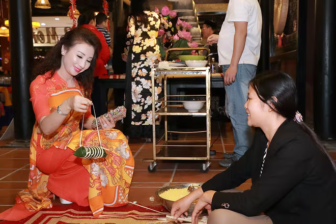 Ngày chuyên đề “Văn hóa – Ẩm thực Tết Việt” diễn ra cả ngày hôm qua 16-12 tại Nhà hàng Ao Ta – Trung tâm thương mại Vincom Mega Mall – Times City (Hà Nội). Tại đây, khách tham quan đã có dịp thưởng lãm không gian văn hóa đậm nét cổ truyền tái hiện lại các phong tục và thú chơi trong những ngày Tết truyền thống.