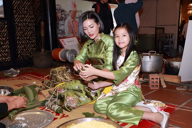 "Hoa hậu Noel 1995" người đẹp, diễn viên Hoàng Xuân và con gái tham dự đêm hội trong trang phục áo dài của NTK Ngân An