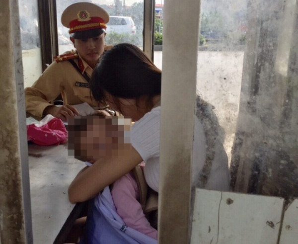 Qua thăm hỏi, động viên của CSGT, cô gái dần trấn tĩnh cho biết mình tên là Phạm Thị Thi, ở Hà Nội. Thông qua số điện thoại của cô gái, CSGT đã gọi điện thoại cho chồng cô gái đến đón vợ con về nhà.