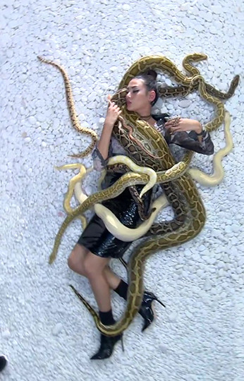 Trên gương mặt của Võ Hoàng Yến không biểu lộ chút xíu sợ hãi nào, thay vào đó là những thần thái cần có của một model chuyên nghiệp trong từng shoot chụp hình. Nhìn vào, khán giả có cảm giác như Siêu mẫu đang “chơi đùa” với bầy trăn rắn, như chơi đùa với những thú cưng chứ không phải là loài động vật khiến nhiều người khiếp sợ.