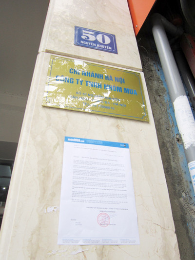 Từ 13-11, Văn phòng Nhóm Mua tại Hà Nội ở phố Nguyễn Khuyến, quận Đống Đa, Hà Nội đã đóng cửa với lý do “lỗi hệ thống”. Ngay sau khi có thông tin trên, nhiều khách hàng đã liên hệ và tới công ty để đòi quyền lợi. Có mặt tại đây chiều 16-11, dù văn phòng Công ty này đã mở cửa song có 4, 5 nhân viên đứng ở cửa chặn chúng tôi lại với lý do “công ty đang kiểm kê, từ thứ ba tuần sau mới tiếp khách. Chỉ có cán bộ công ty mới được vào”. Cũng với câu trả lời này, tất cả khách hàng của Nhóm Mua Hà Nội hôm qua đến đây đành phải ngậm ngùi ra về. Trên bức tường mặt tiền của văn phòng, một tờ thông báo đã được dán lên với nội dung: “Công văn số 14 về việc chuyển giao ban điều hành mới của Công ty TNHH Nhóm Mua” do bà Nguyễn Thị Thanh Vân - Giám đốc chi nhánh Hà Nội - Công ty TNHH Nhóm Mua ký.