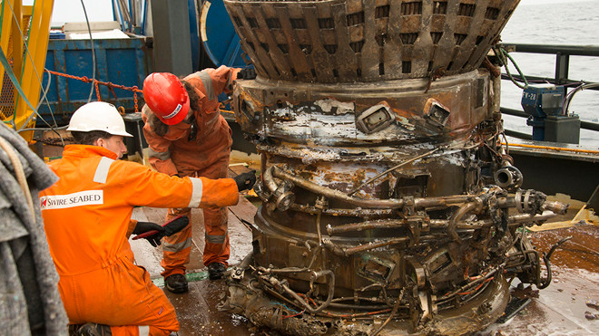 Hai mảnh động cơ này là những bộ phận chính của hai động cơ tên lửa Saturn 5 F-1, chiếc tên lửa đã đưa đoàn thám hiểm Apollo lên mặt trăng cách đây hơn bốn thập kỷ. Bezos cùng nhóm tìm kiếm của ông đã tìm thấy những mảnh vỡ này ở độ sâu 5km dưới đáy Đại Tây Dương.